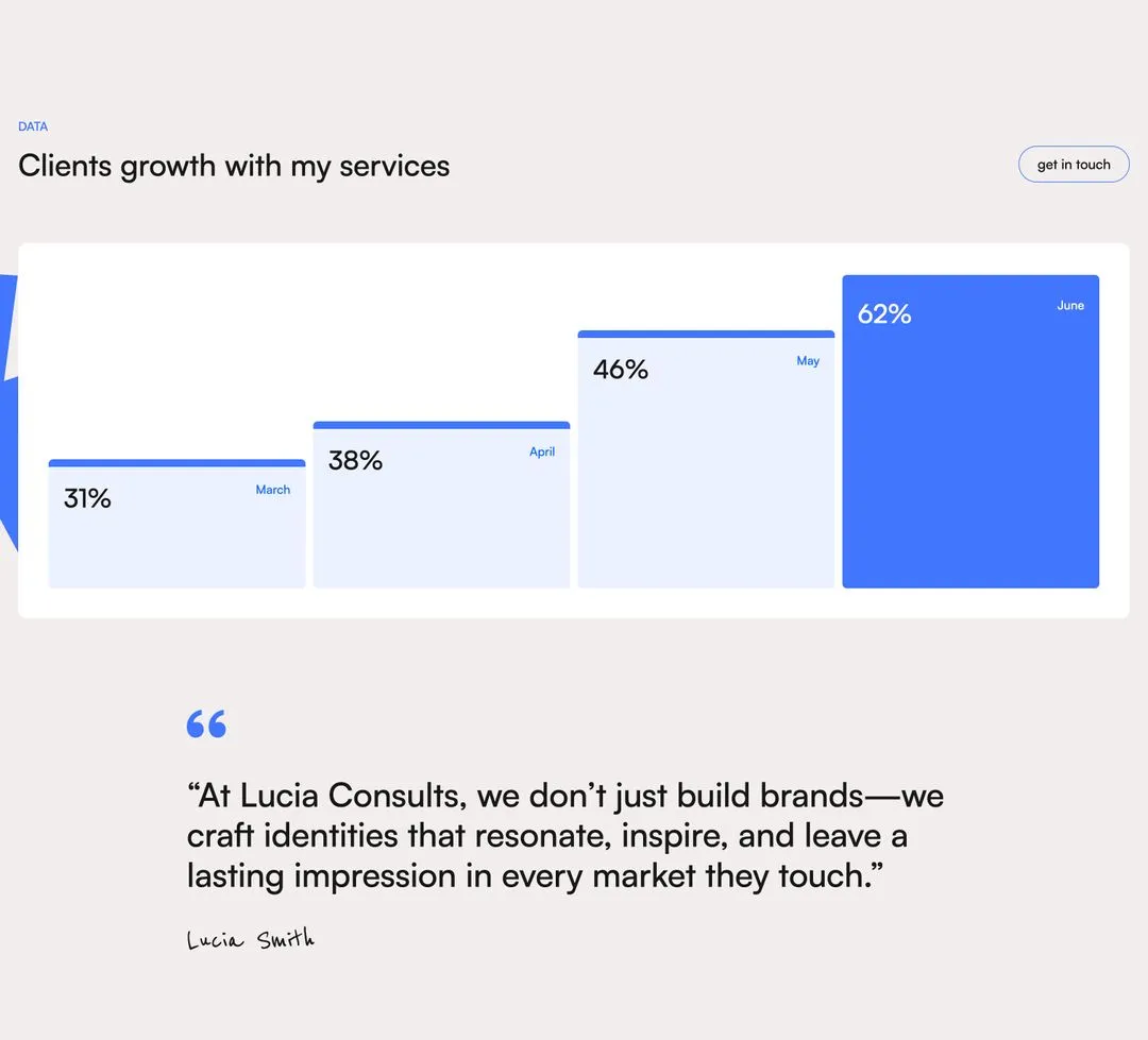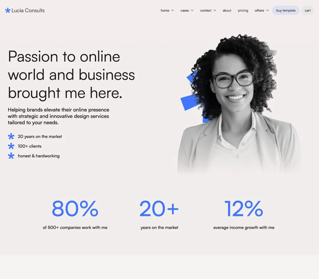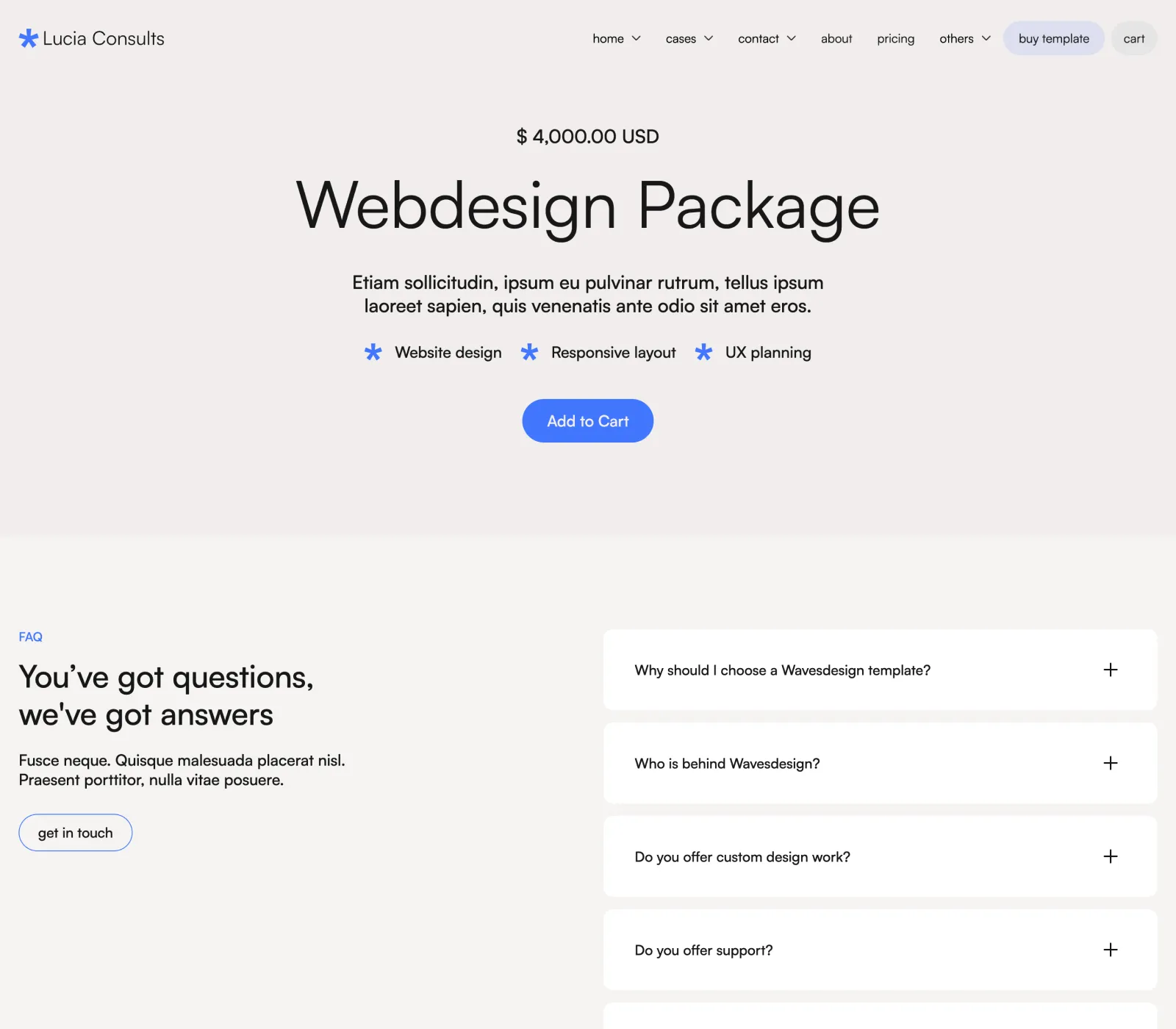 Lucia Consults Webflow Template comes with eCommerce set up, so you can start selling your services straight away.