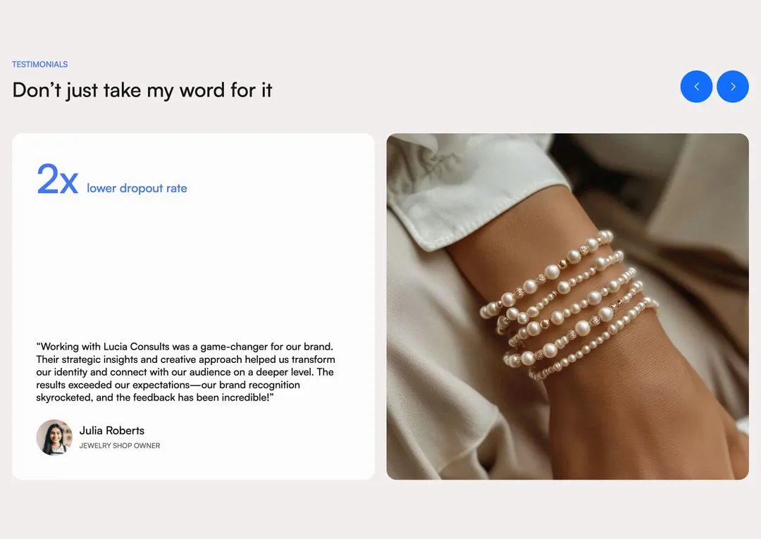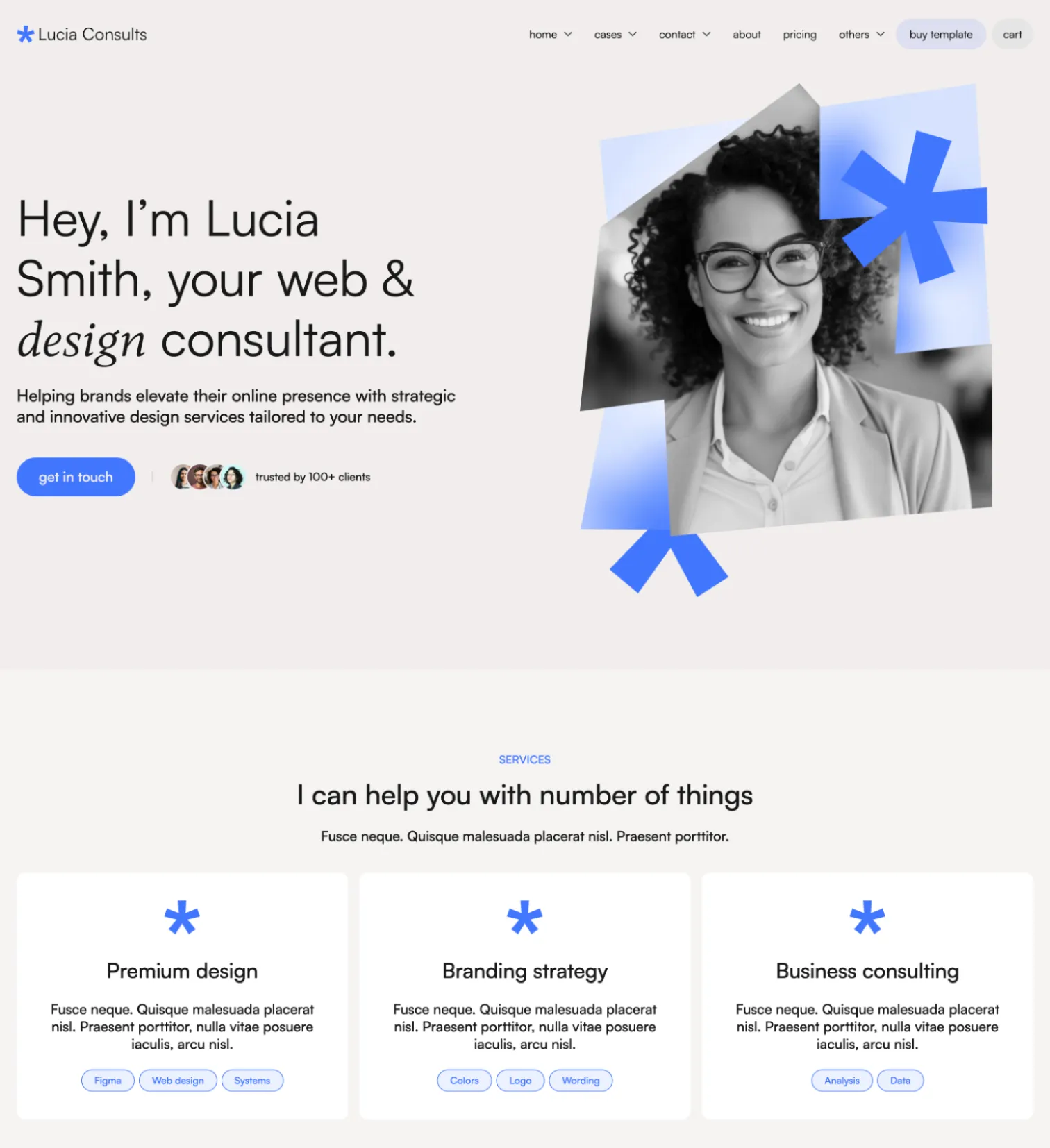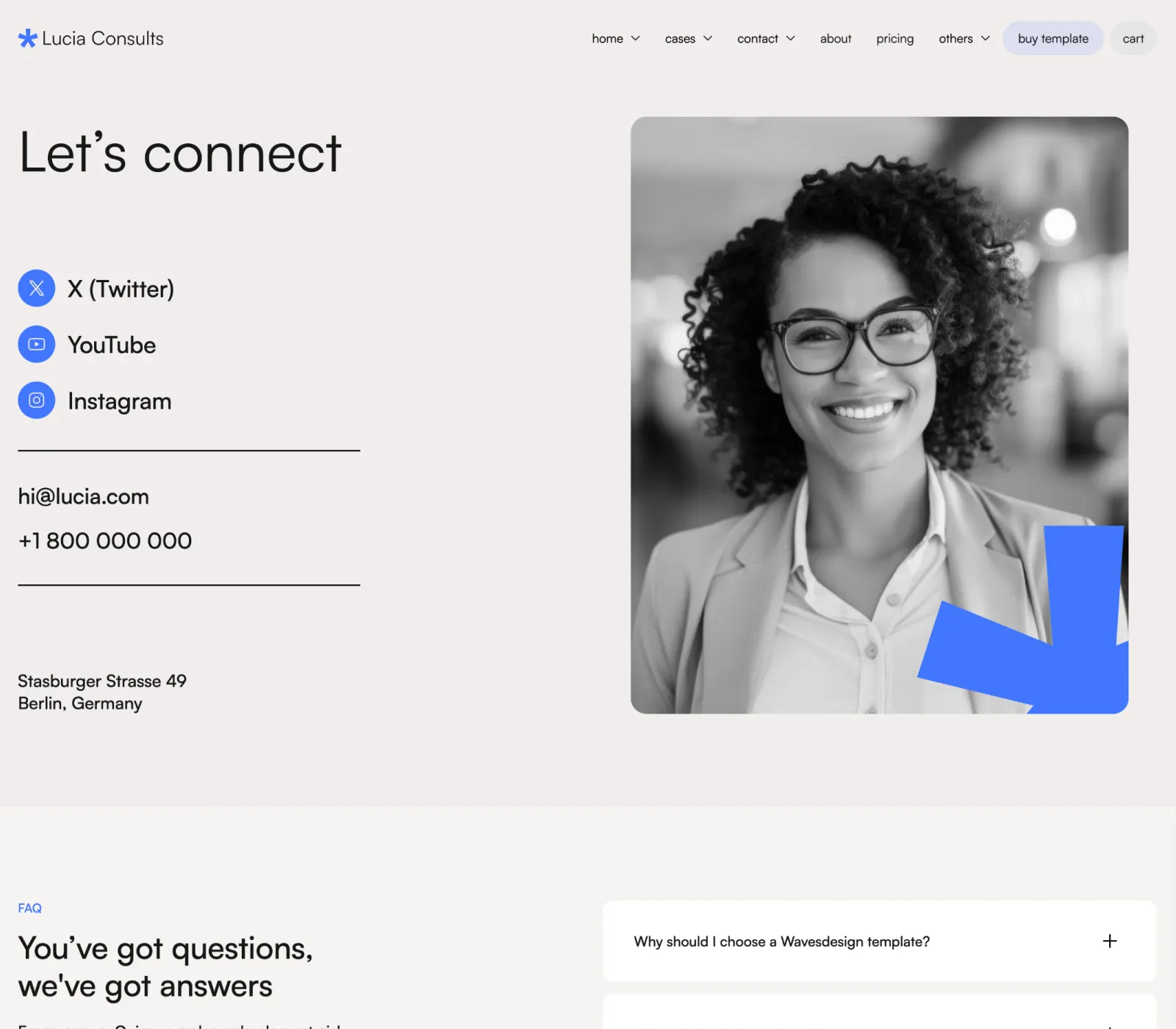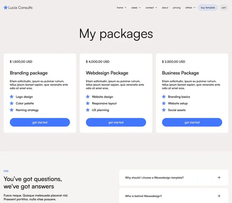 Lucia Consults Webflow Template comes with eCommerce set up, so you can start selling your services straight away.